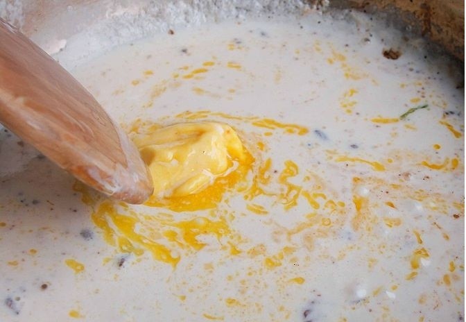 تخسين الوعاء علي النار حتي يغلي ثم العمل علي تصفية بقطعة من القماش .